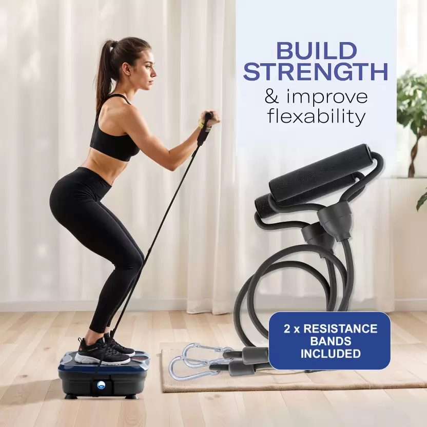 Making the body vibrating machine even better,we’ve included this resistance band, In case you want to turn up your exercise routine and burn more calories or fat in specific locations, this resistance band ensures that you sweat more and enjoy your workout better, it also acts as a support to give more stamina while standing or squatting on the Body Vibration plate.