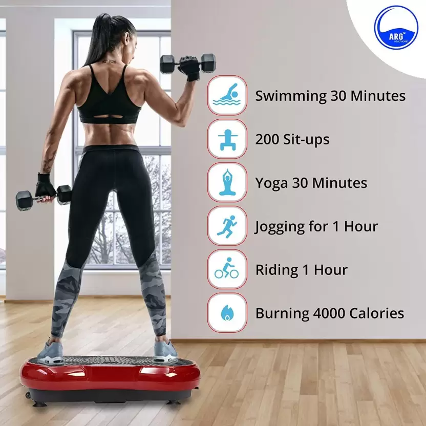 Just 3 x 10 minute session per day is equivalent to spending 2 hours training with no strain on the joints or the heart as the vibrating plate moves smoothly with speeds from 1-50 levels.